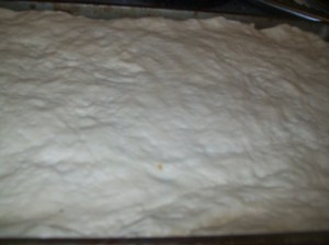 (I got the recipe from Mommy’s Kitchen. When I made this on Saturday, I wanted a simple pizza crust for our pizza. This recipe fits the bill. It was easy to make and was tasty. The only change I would make is adding some Italian seasoning to the crust so that it would have a little more flavor. Other than that, I wouldn’t change a thing.)