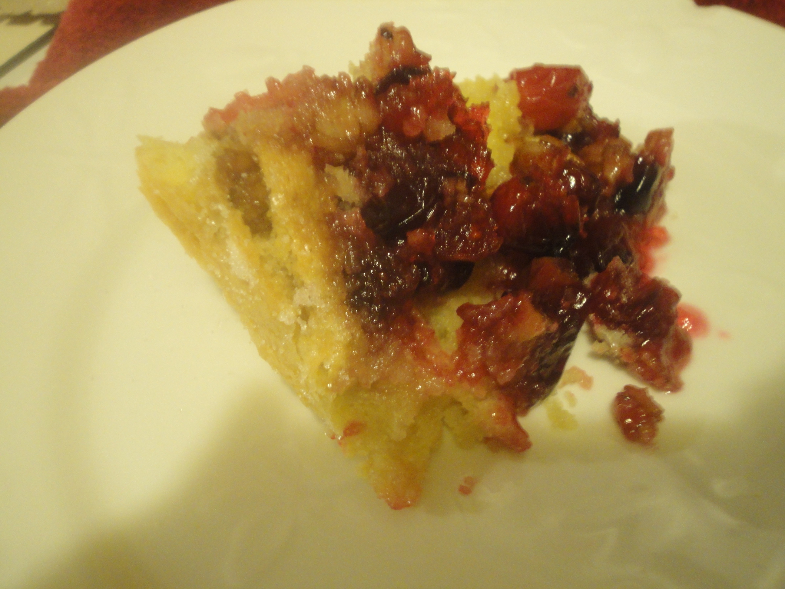 I found this recipe on The Pioneer Woman’s blog. Since I love cranberries, I decided a Thanksgiving dessert would be perfect. Before I could serve it to my whole family on turkey day, I decided to bake one and taste-test it. The taste is divine.