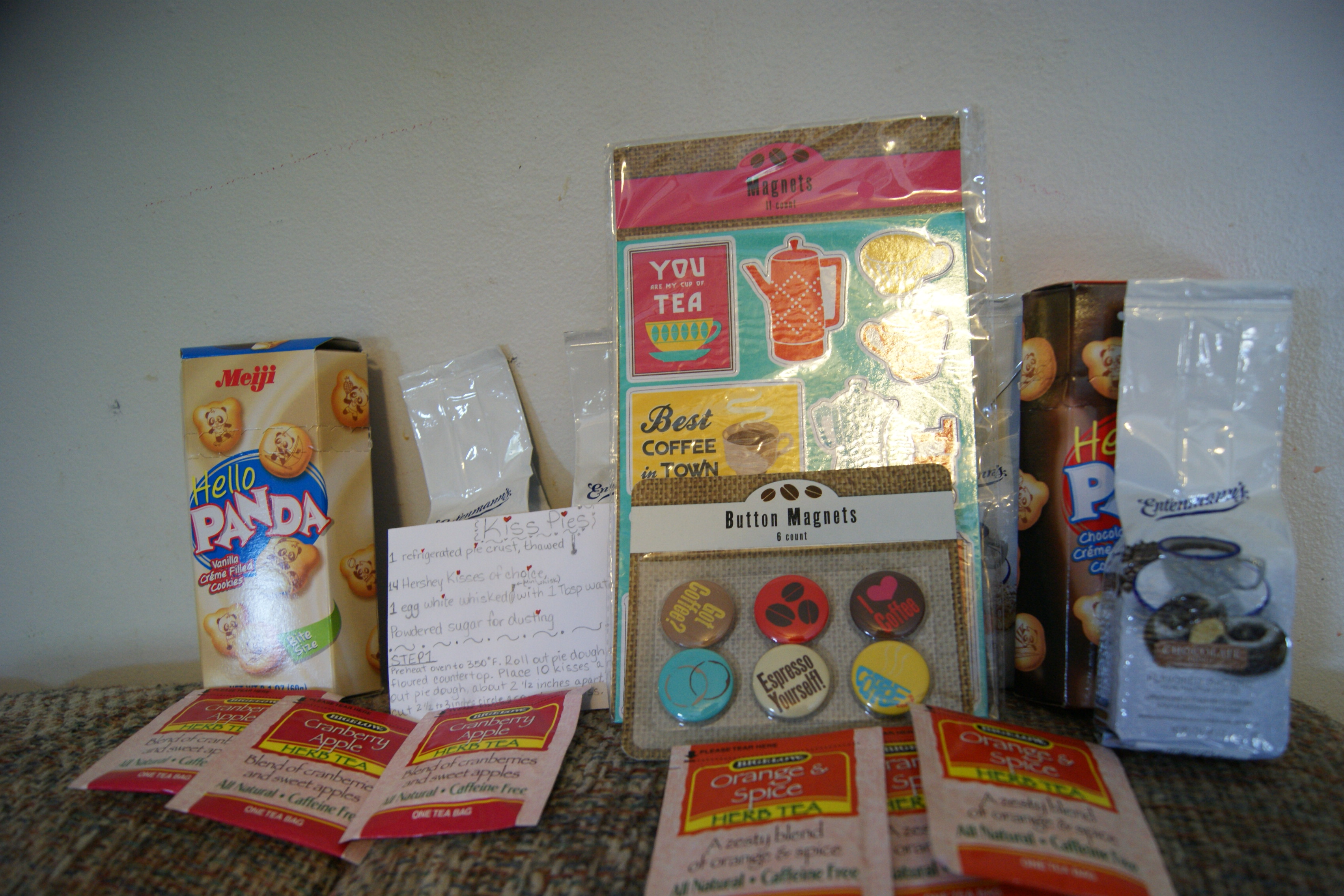 -The boxes are to be filled with fun foodie things, local food items, or even homemade treats! The spending limit is $15. The box must also include something written. This can be anything from a note explaining what’s in the box to a fun recipe…use your imagination!