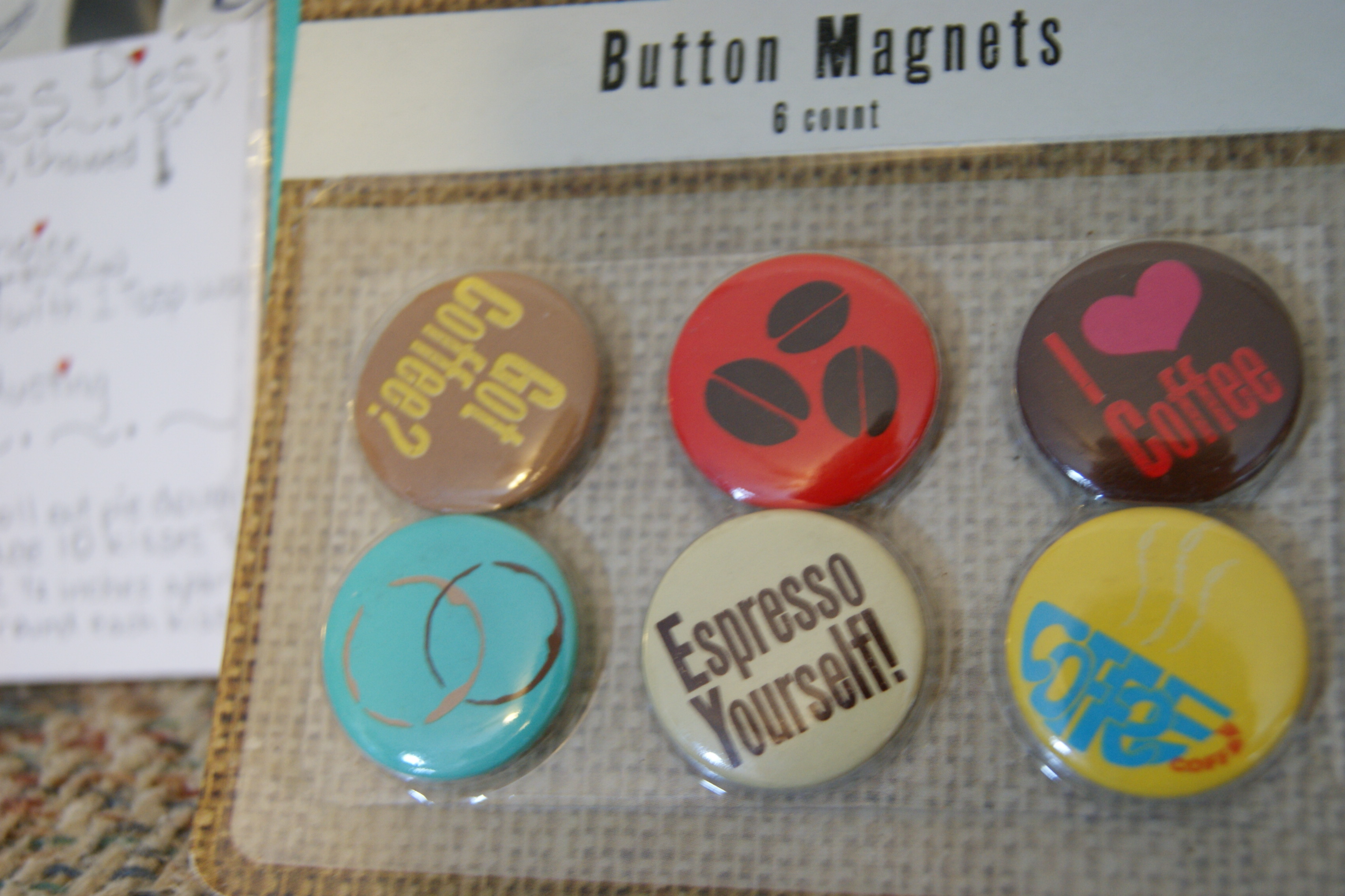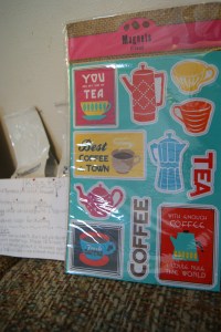I have a whole basket of magnets at work to hang things up on the whiteboard. In years past, it’s been a filing system for me. When students need to finish an assignment for their regular class, I will hang it on the board. It’s so we don’t lose it, and so it’s a visual reminder for me. Some of these magnets will go in the magnet basket. Some will go on my fridge.