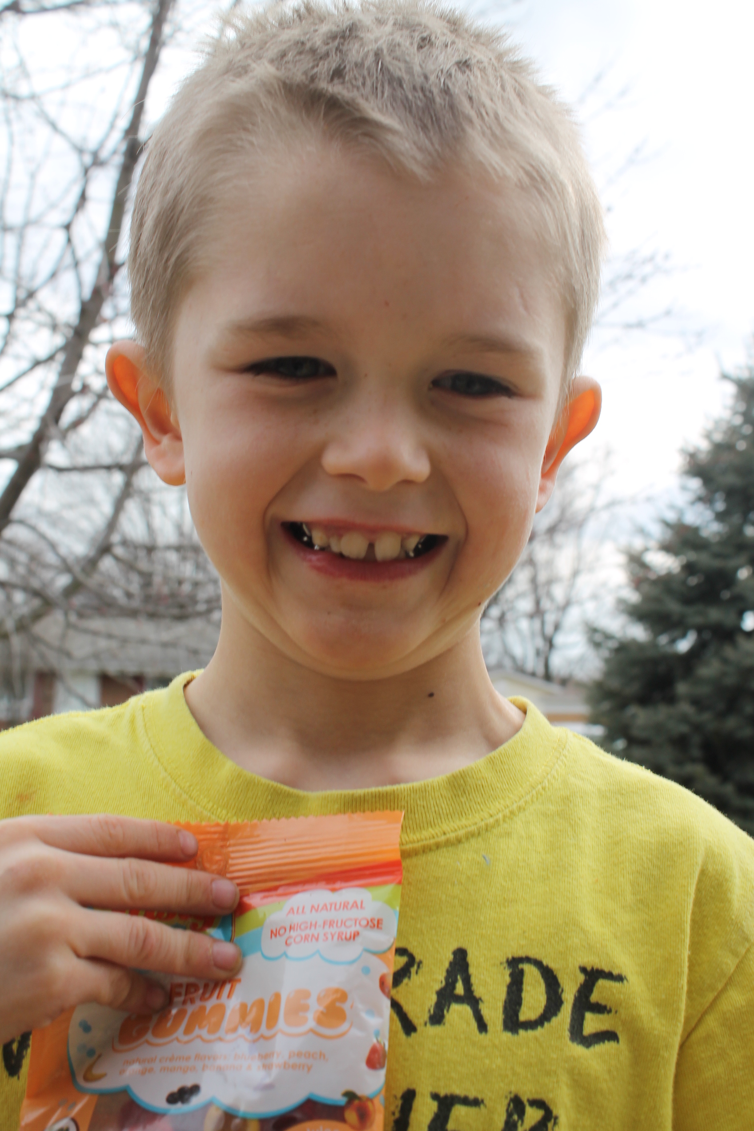 She was extremely thoughtful and had looked at the blog. She saw that one of the boys (the Wee One) loves fruit snacks, so she sent some that are all natural with no high fructose corn syrup. He absolutely loved them. His first comment was, “They have a dot com.” Only my boy!