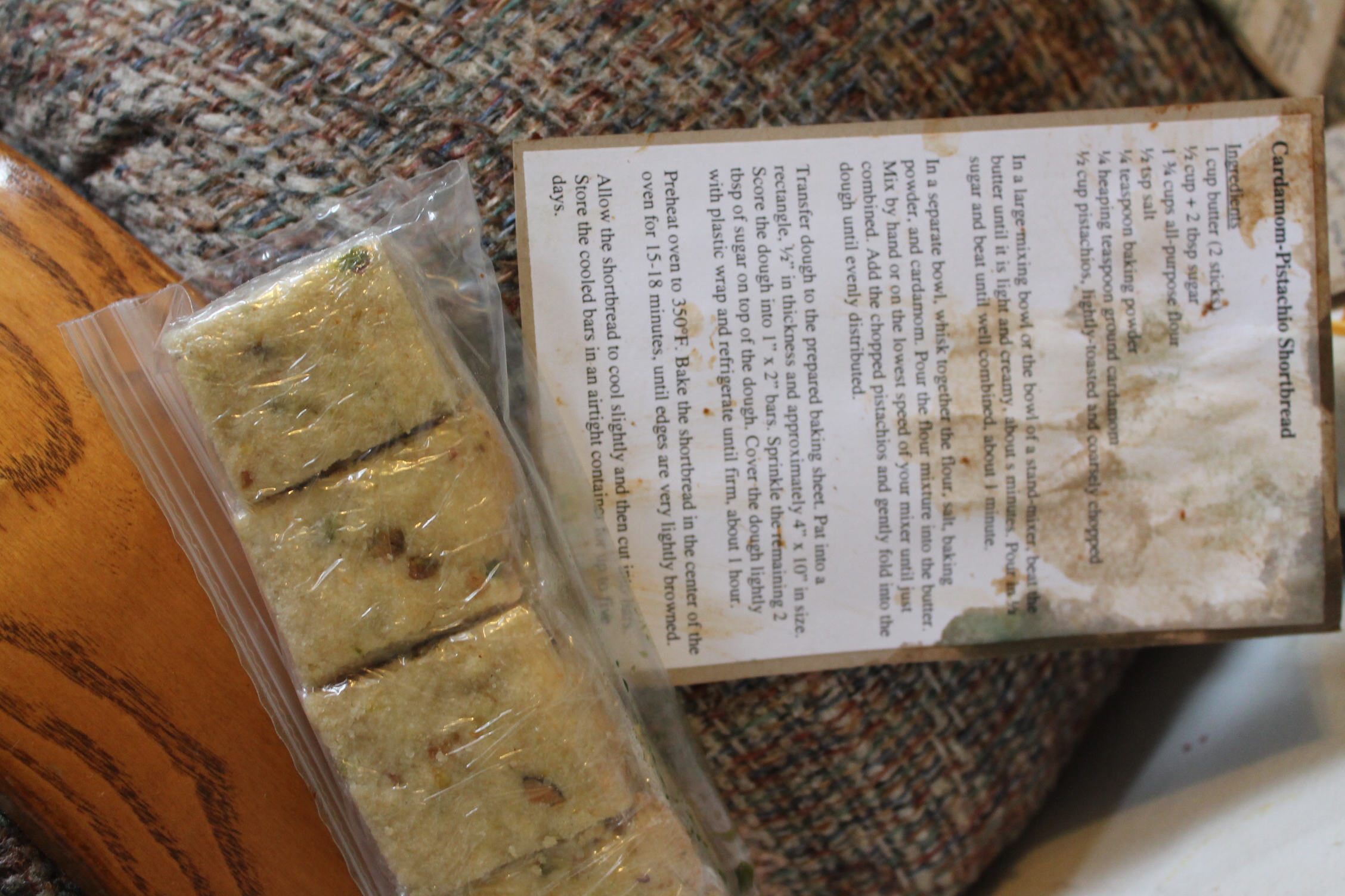 Pistachio cardamon shortbread with the recipe. It is absolutely delicious! I’m enjoying it one piece at a time.
