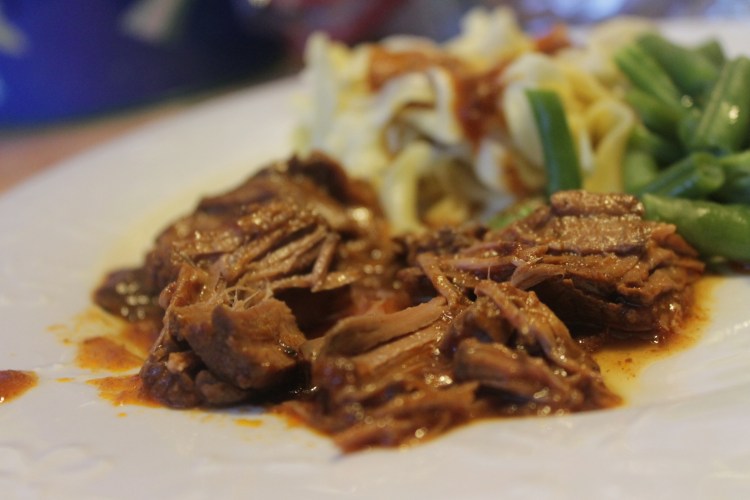 Even though I like making baked potatoes cooked in the slow cooker, I’m not a fan of potatoes cooked with roast. We had buttered noodles with our roast.