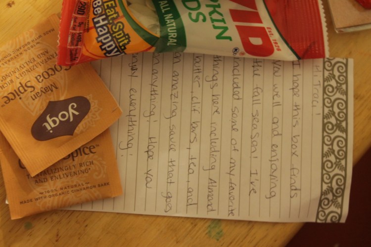 This is my first anniversary of participating in Foodie Pen Pals. Shania, who lived in New Jersey, sent me my first box. I remember worrying about her last October because she was in the path of Superstorm Sandy. Luckily she was fine. She sent me magnets which is funny because Katie, my partner this month, also sent me magnets.