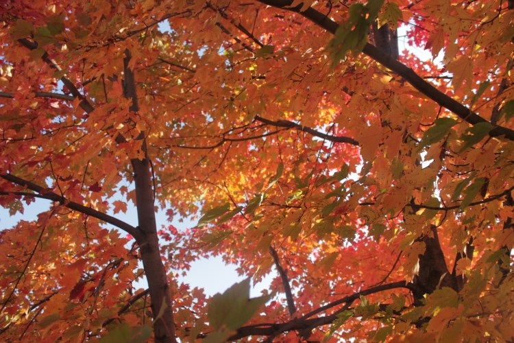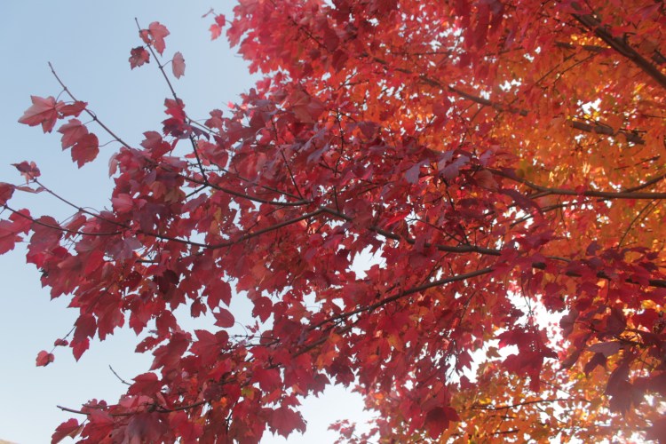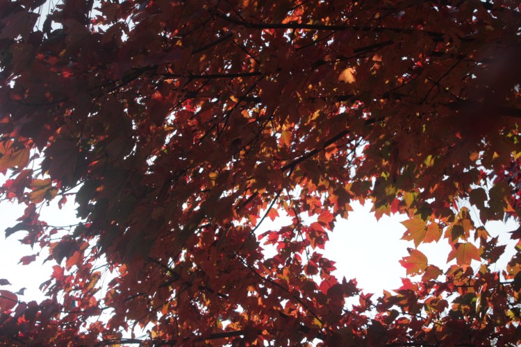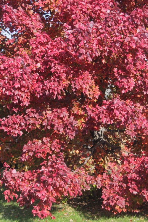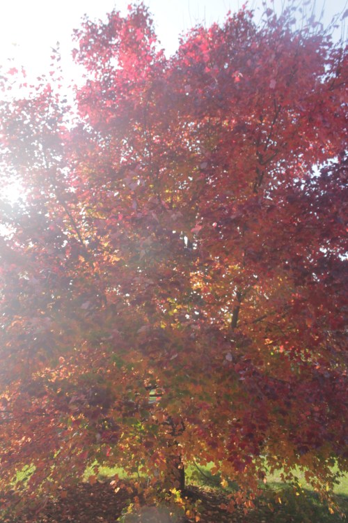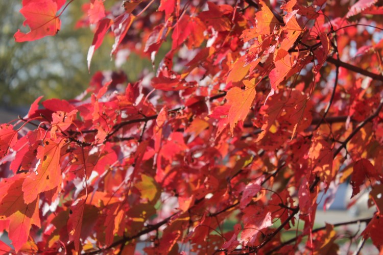 We have only one deciduous tree in our yard. It’s an autumn beauty maple (at least, I think that’s the name of it). It gets gorgeous during the fall. It has not completely turned yet. However, since the lighting is great outside today (the sun shining), I decided to take some pictures of it.