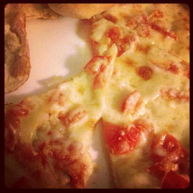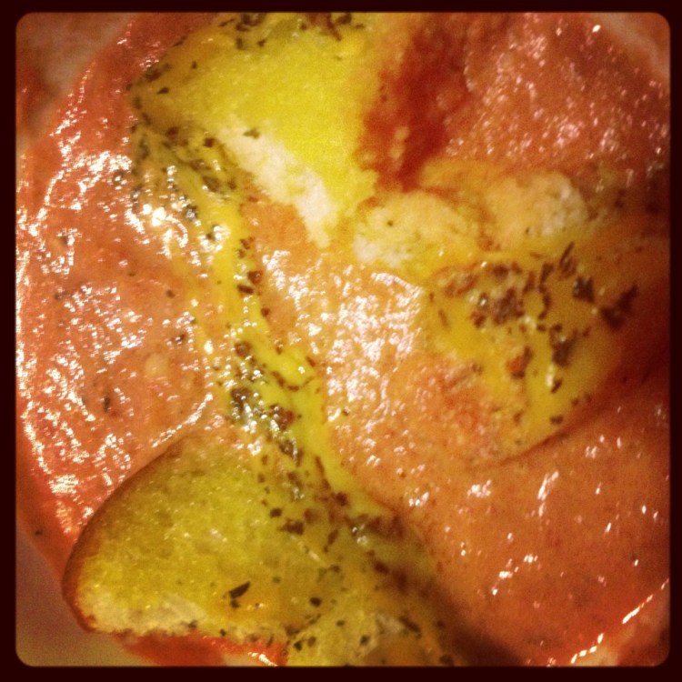 The day before, I had gone out to eat at a new to us restaurant – Roma. I had gotten a Bruschetta pizza to save some for this challenge. I also had some leftover garlic bread made with olive oil instead of butter. Since my mouth was still numb, I didn’t bite on it using my front teeth. I folded it up and chewed with my molars. When my dentist called me later, I told him what I did, and he told me I was pretty clever. I love that my dentist will personally call his patients after they have work done on their teeth to make sure they are doing good. He ends his call with, “Call me if you need anything.” He means it.