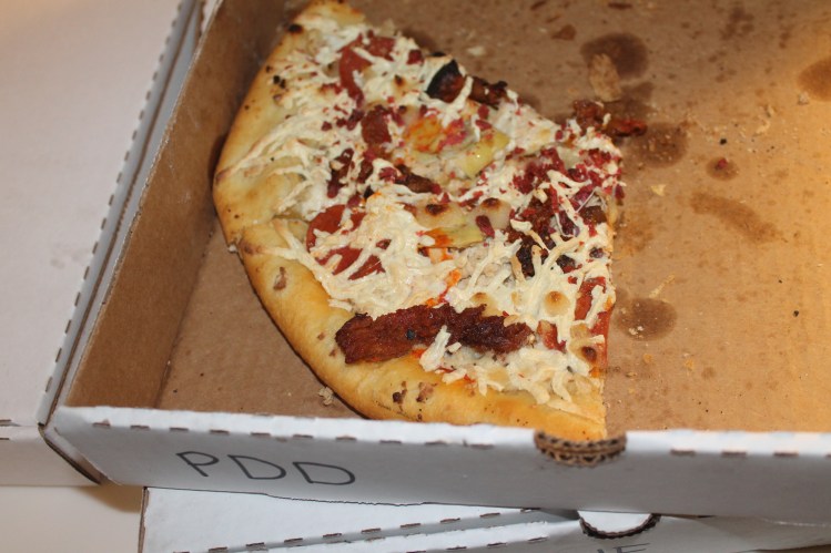 - Vegan pizza called the pig destroyer destroyer – Hubby’s cousin got it for us when we visited them in Toronto.