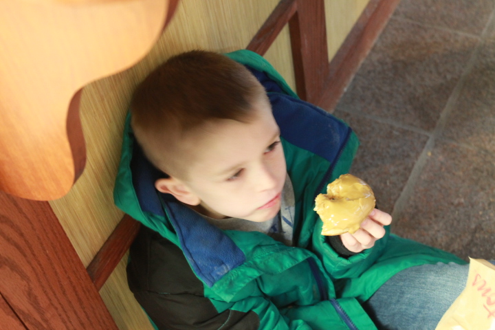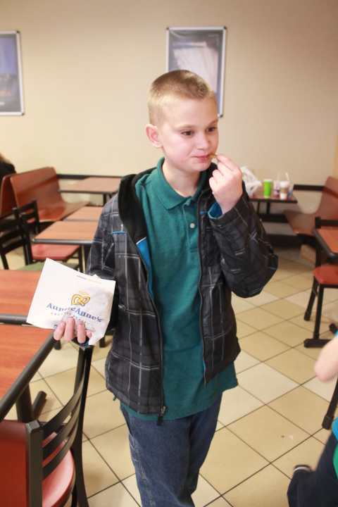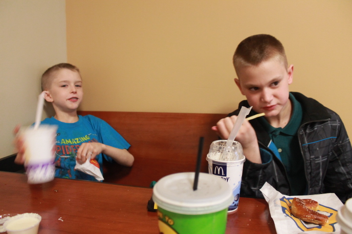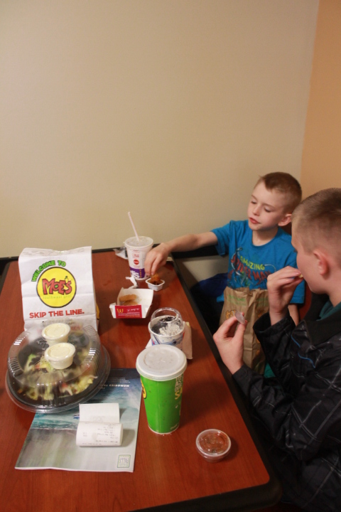 More eats at the I-90 service area. The Wee One wanted McDonald’s so that is what he got. The Imaginative One got a McFlurry and a soft pretzel.