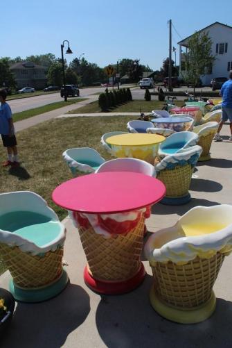 Here are some photos of Scoops. They had chairs, tables, and trashcans shaped like ice cream cones was so cool. It was a treat for my eyes.