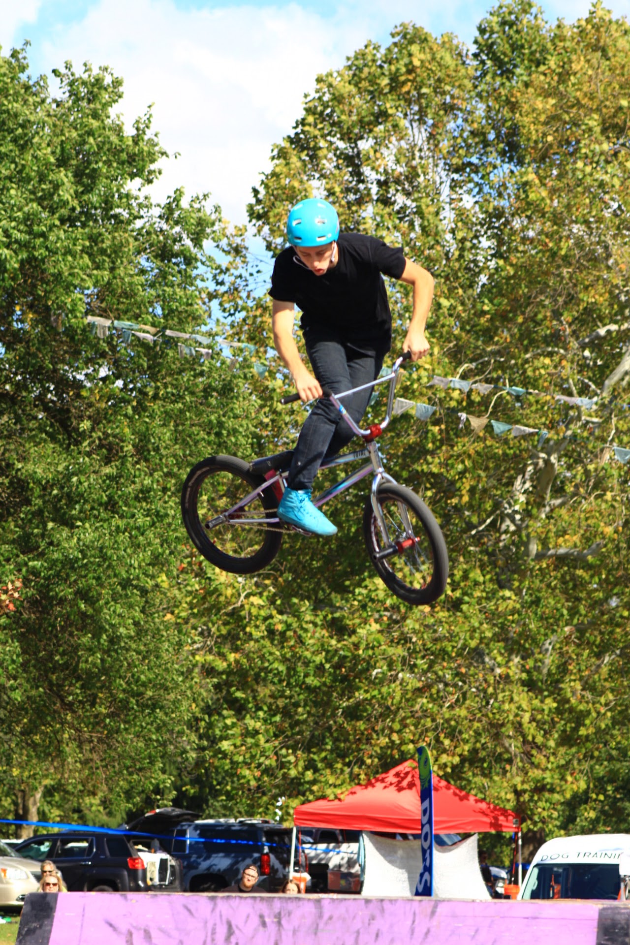 This weekend we went to an outdoor festival for our lunch on Saturday. We also watched some of the dog jumping, slack line gymnastics, and BMX bicycle tricks.