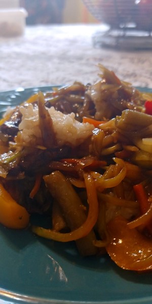 When my aunt was here, we cleaned out my fridge. I had a bunch of veggies that needed to be used up, so I decided to make a stir-fry. This is the quick and easy stir-fry sauce I used when cooking the stir-fry.