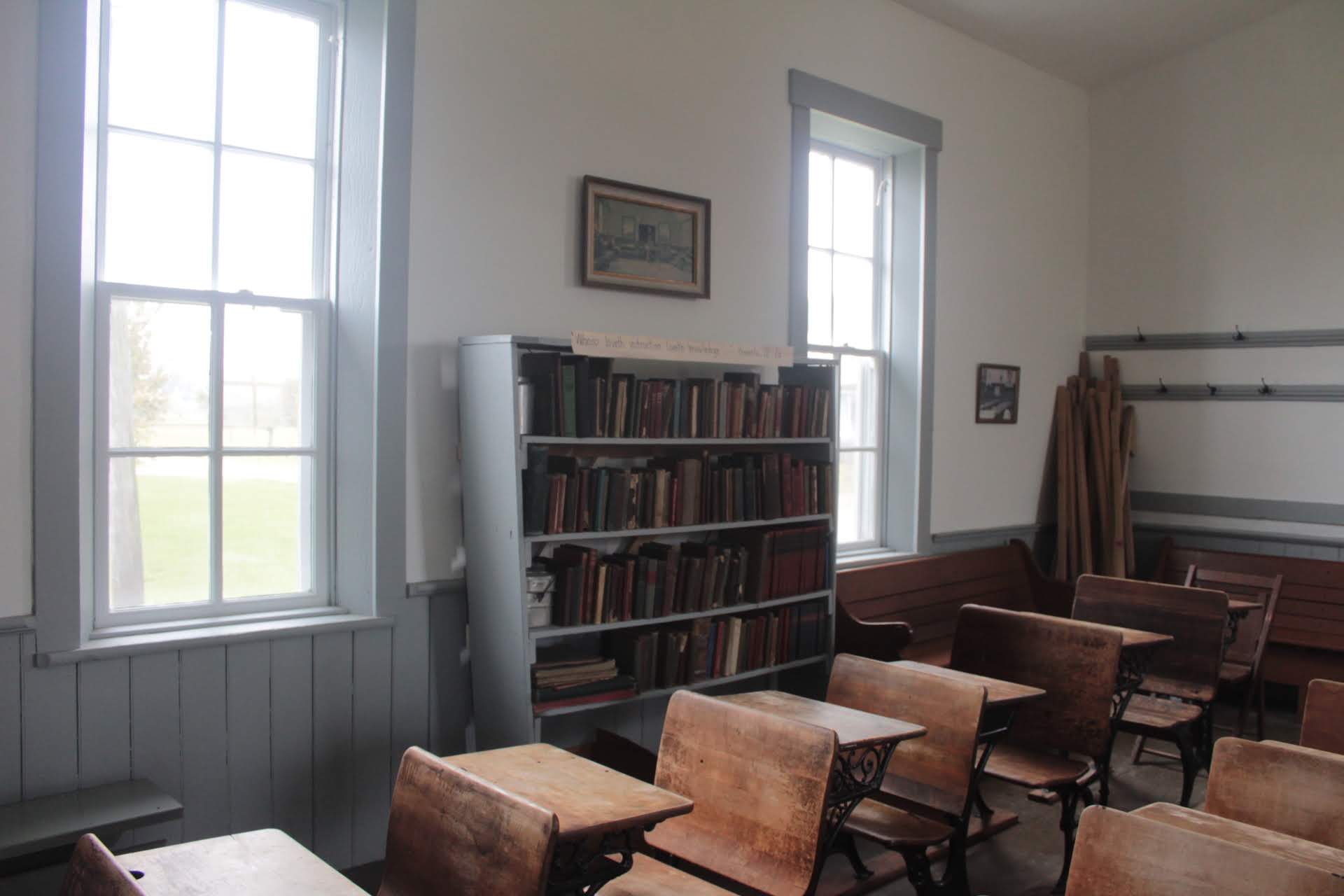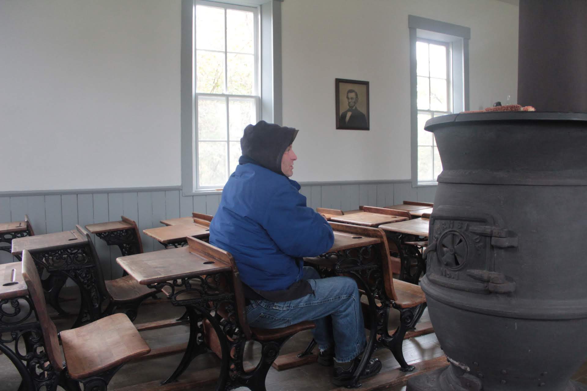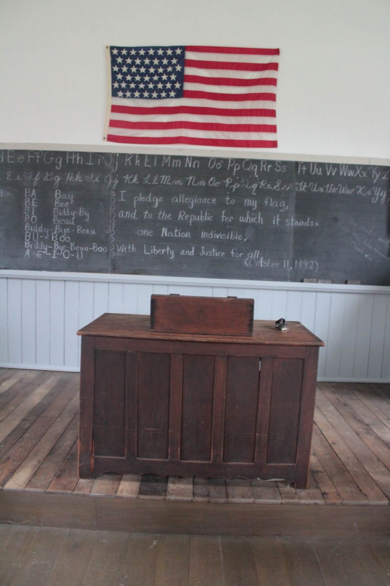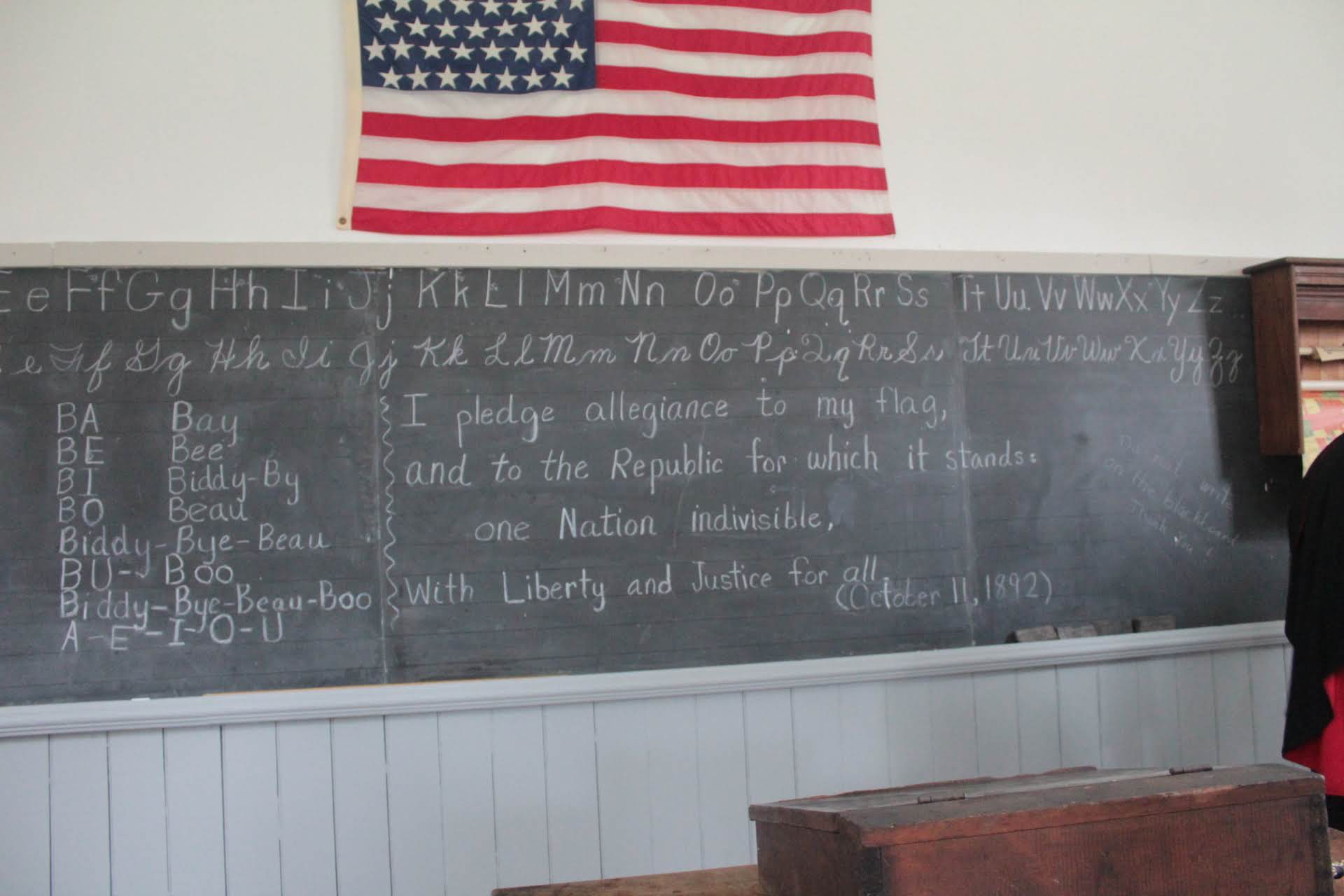 The first building we visited was the One Room School Room. She talked about the reasons why girls were more educated than boys, the history of the American flag, and how many school buildings were in the county at one point.