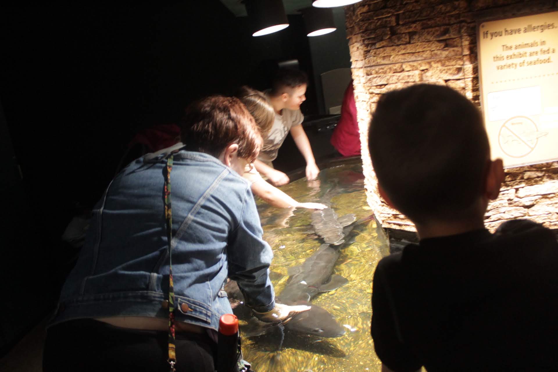 There are 2 areas where you can pet a creature. One is the sturgeon in the Rivers area and the other is the sting ray in the Oceans area. Both Hubby and I decided to pet the sturgeon.