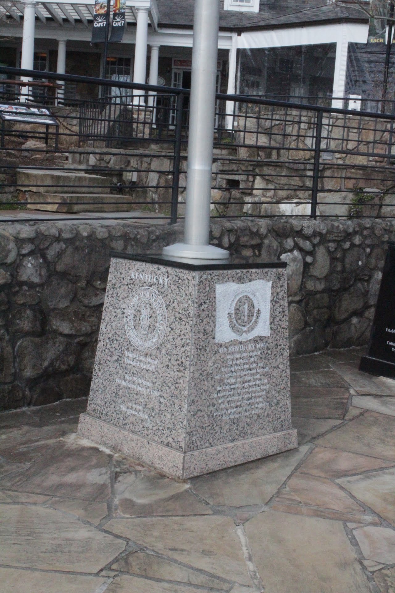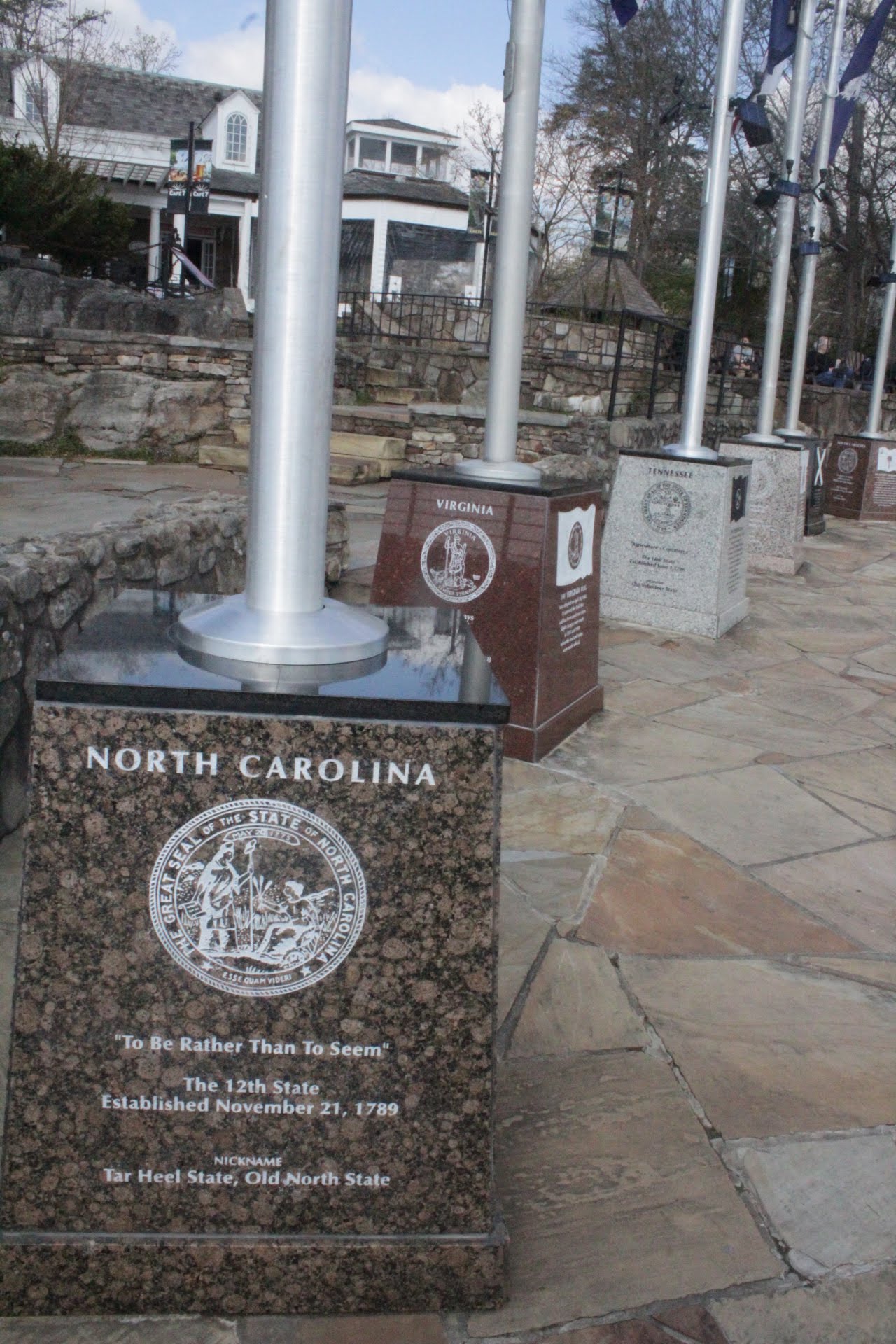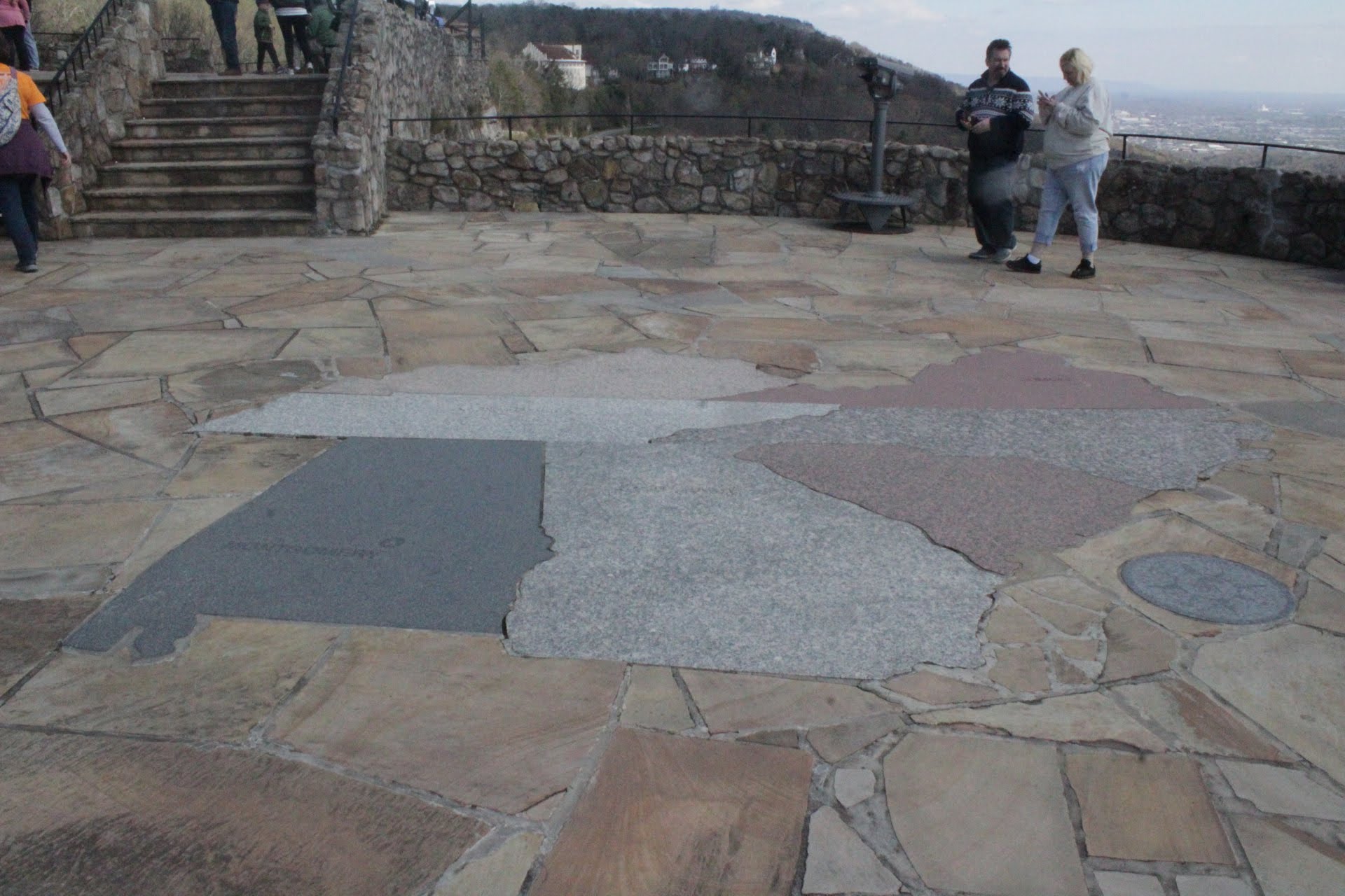 There was flags from all 7 states near the Overlook. The bases had information about each state which was interesting to read. There was also a map showing all 7 states made out of stone on the ground.
