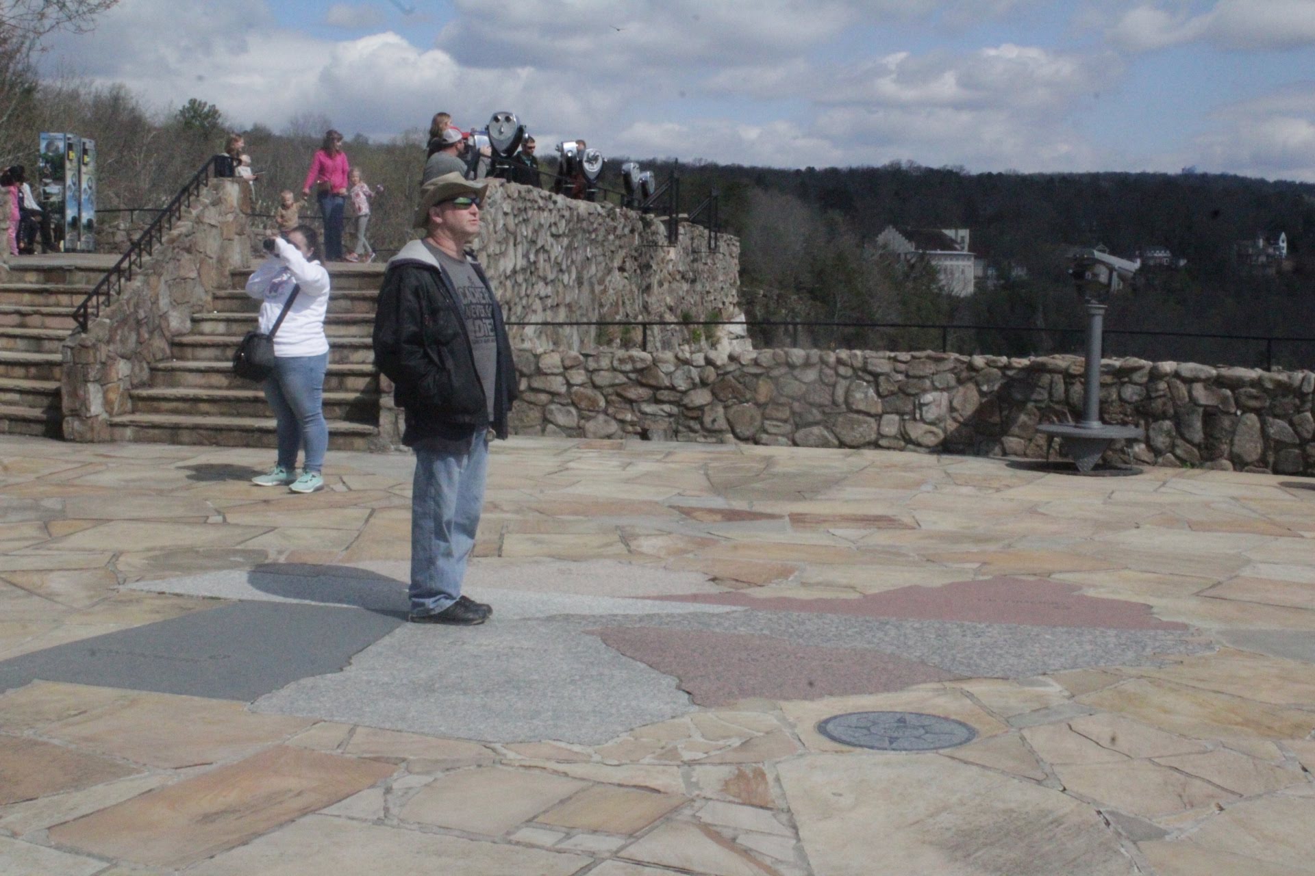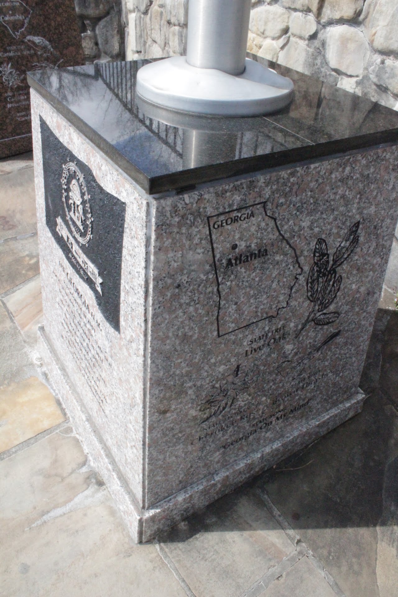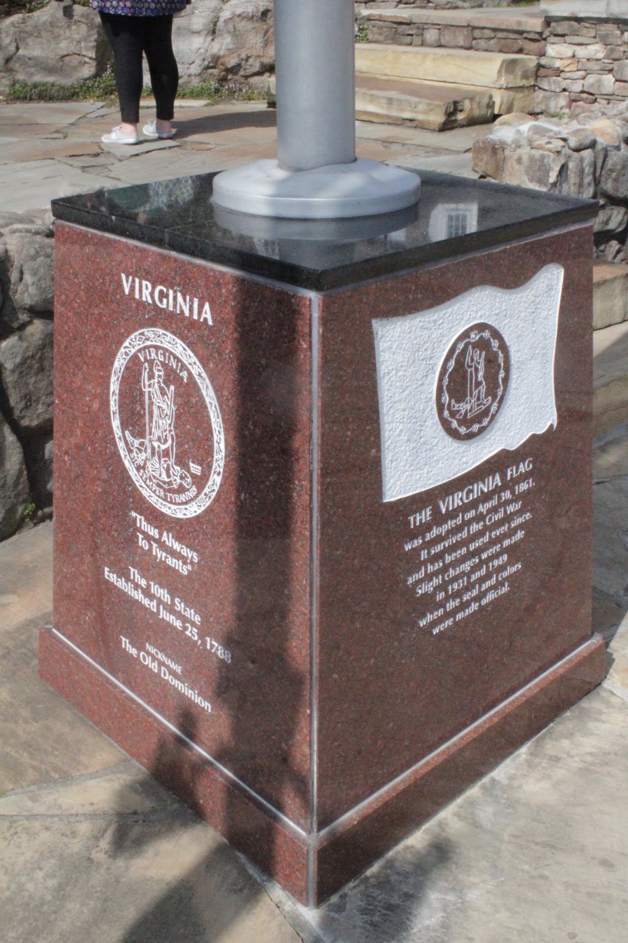 There was flags from all 7 states near the Overlook. The bases had information about each state which was interesting to read. There was also a map showing all 7 states made out of stone on the ground.