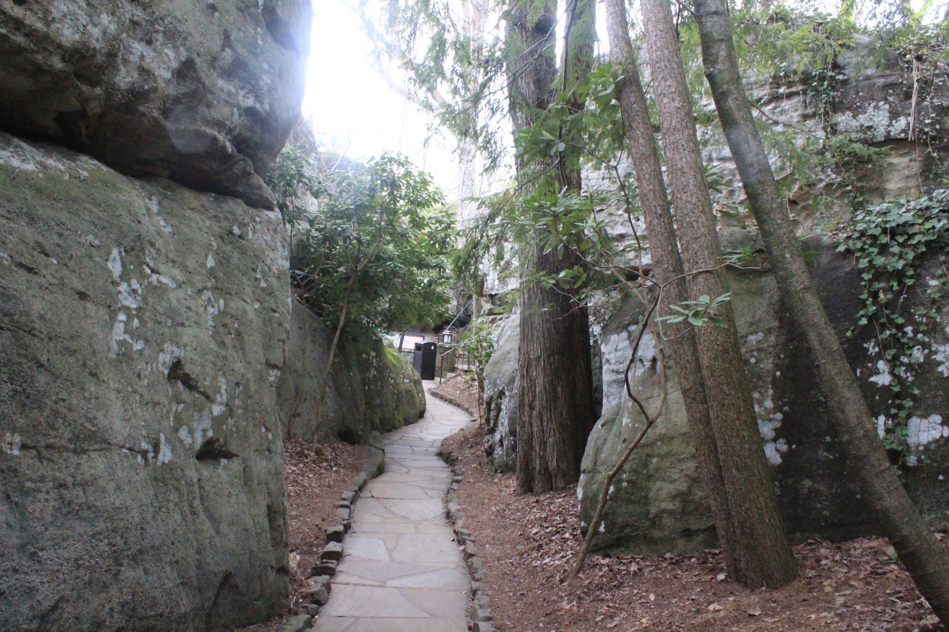 Hubby and I decided to go and find the lower pathway after visiting the Overlook. The first order of business was to cross the suspension bridge.