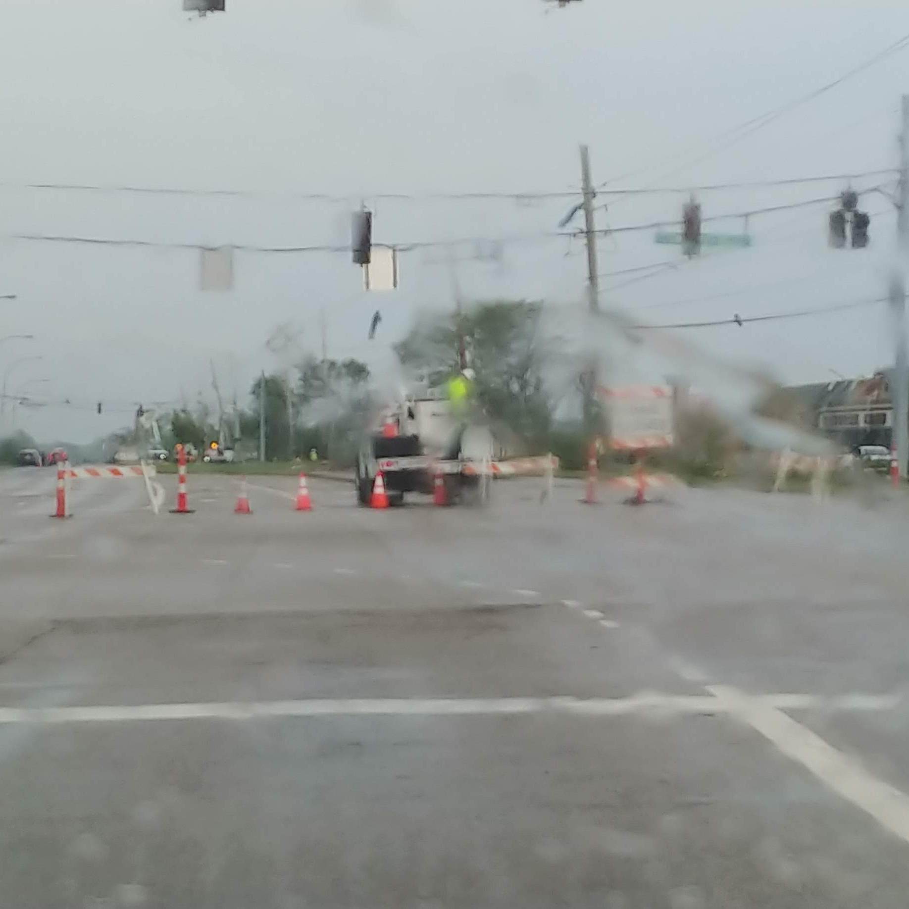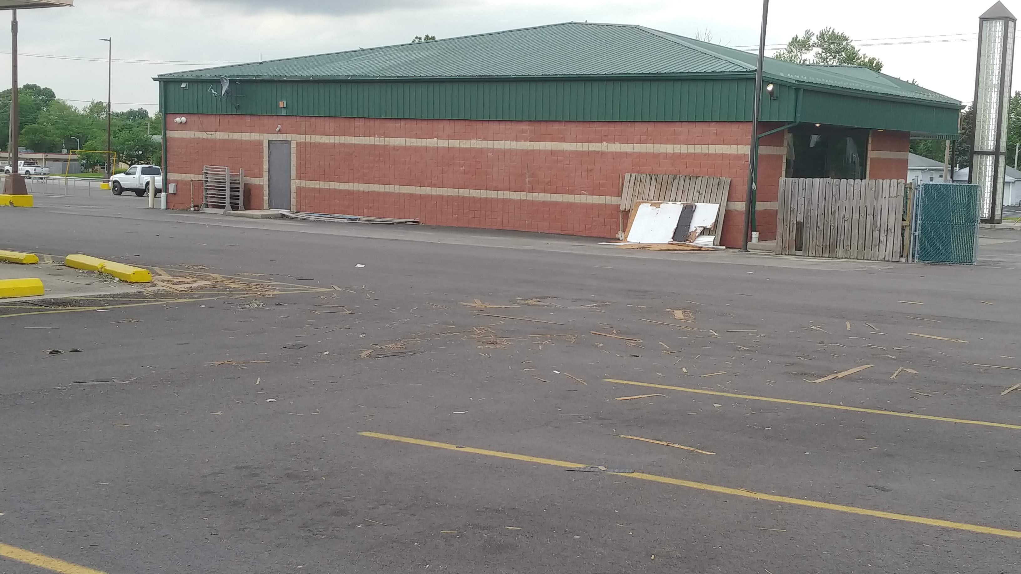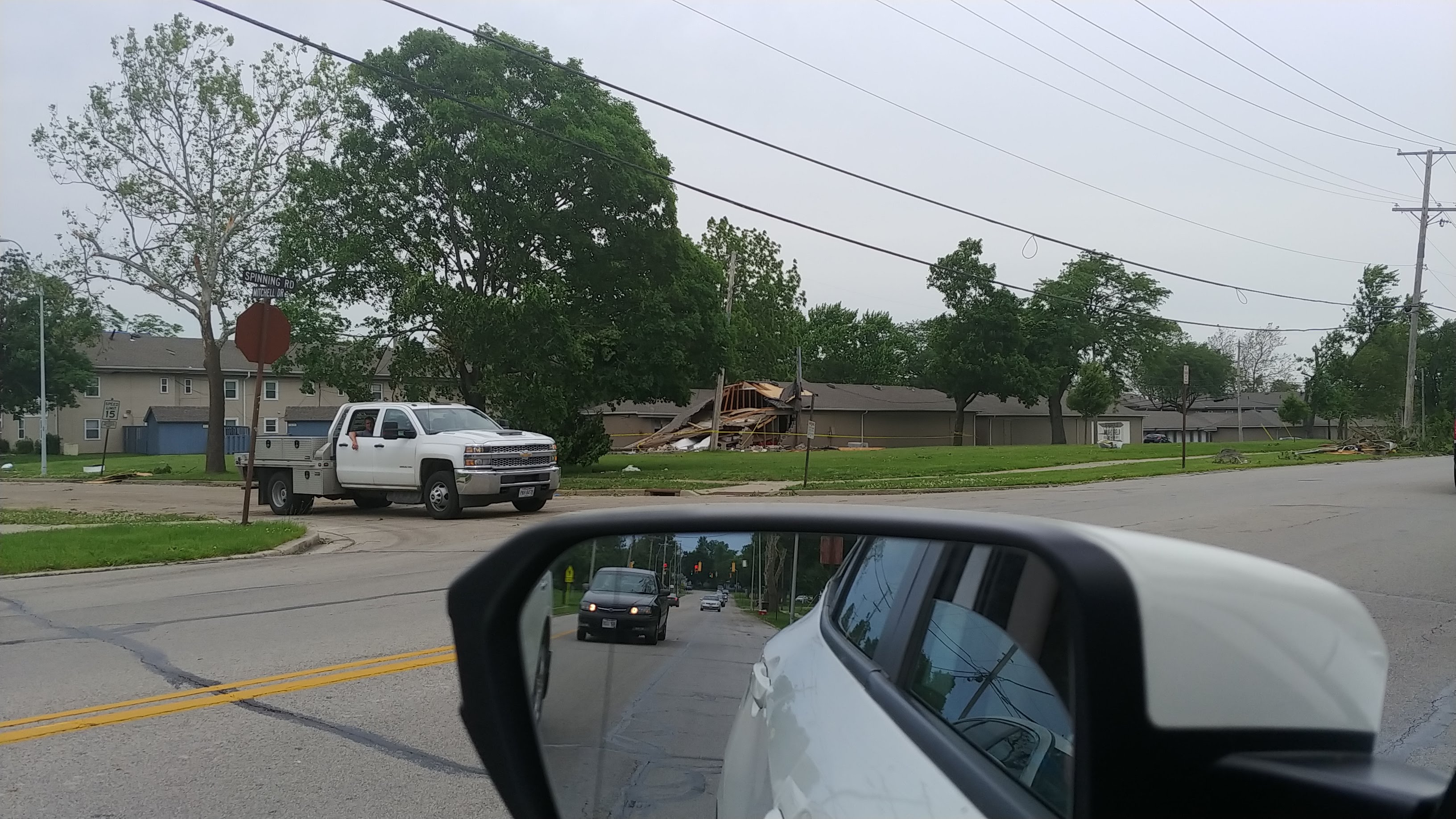 Some of the damage in Beavercreek, Ohio. They were hit with an EF-3 tornado. Roads were closed. Traffic lights were malfunctioning. Businesses were closed because of the lack of power. Buildings were damaged.