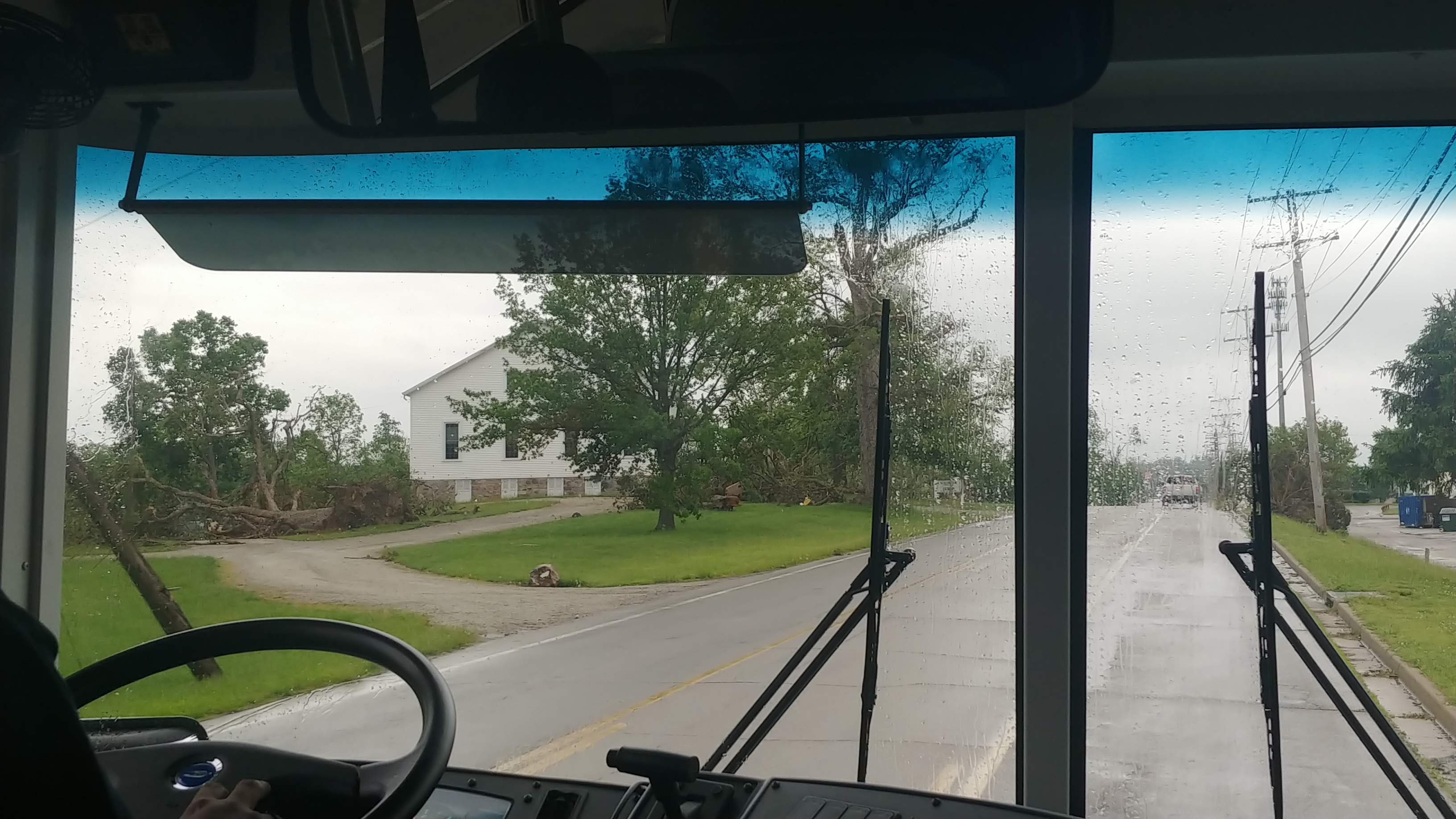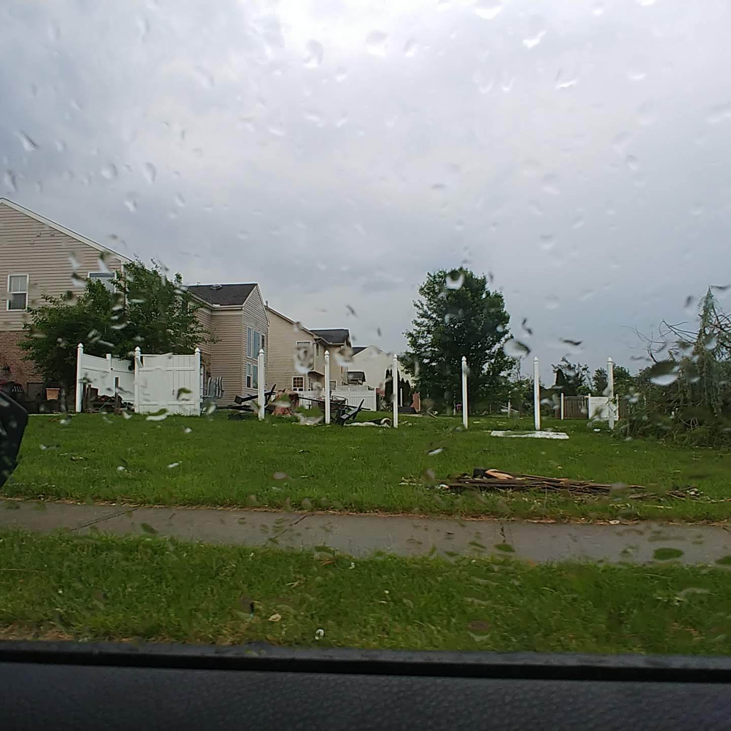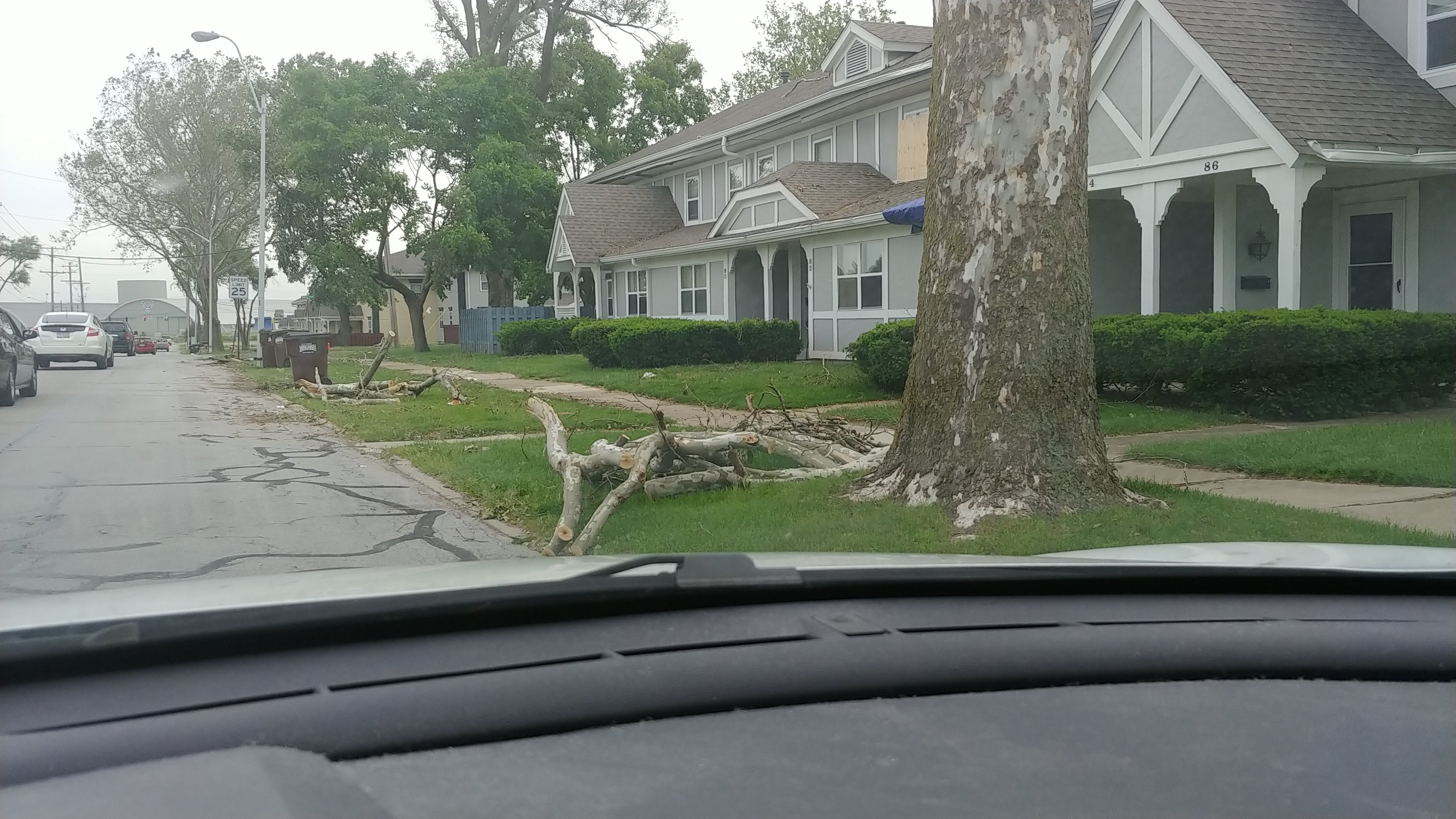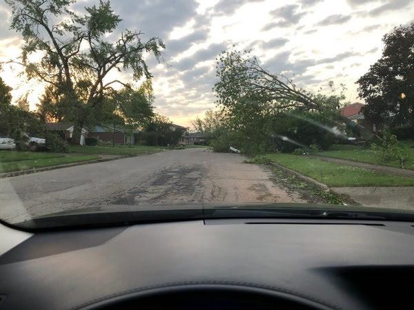 Some of the damage in Beavercreek, Ohio. They were hit with an EF-3 tornado. Roads were closed. Traffic lights were malfunctioning. Businesses were closed because of the lack of power. Buildings were damaged.