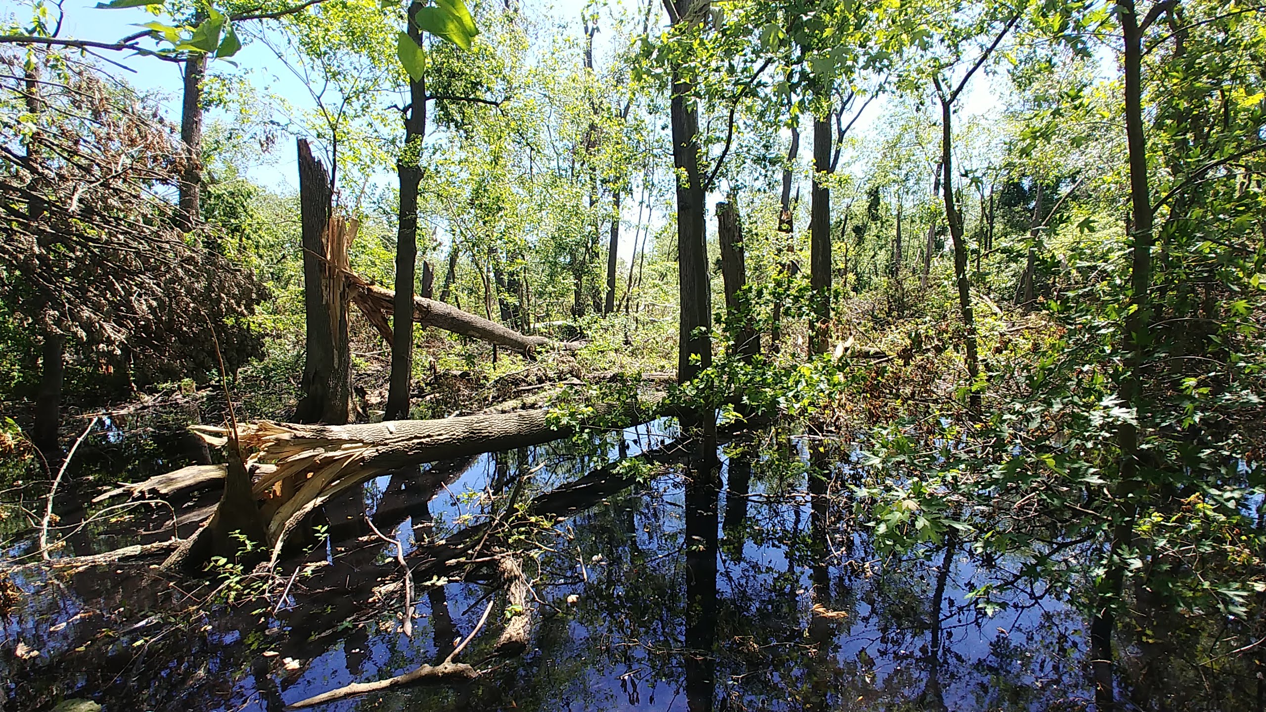 Here is where the most damage from the tornado. This is the Wet Forest/ Boardwalk part of the park. The water is overflow from the Stillwater River.