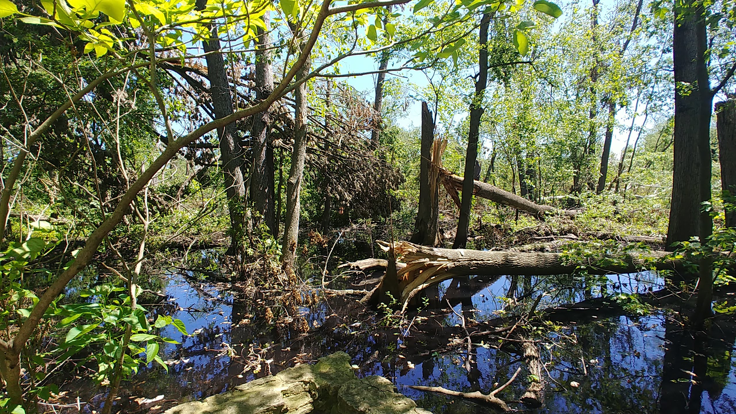 One of the hardest hit areas of Dayton was near the Wegerzyn Gardens MetroPark. Part of the park was destroyed in the tornado. The gardens were untouched with the exception of some plywood.