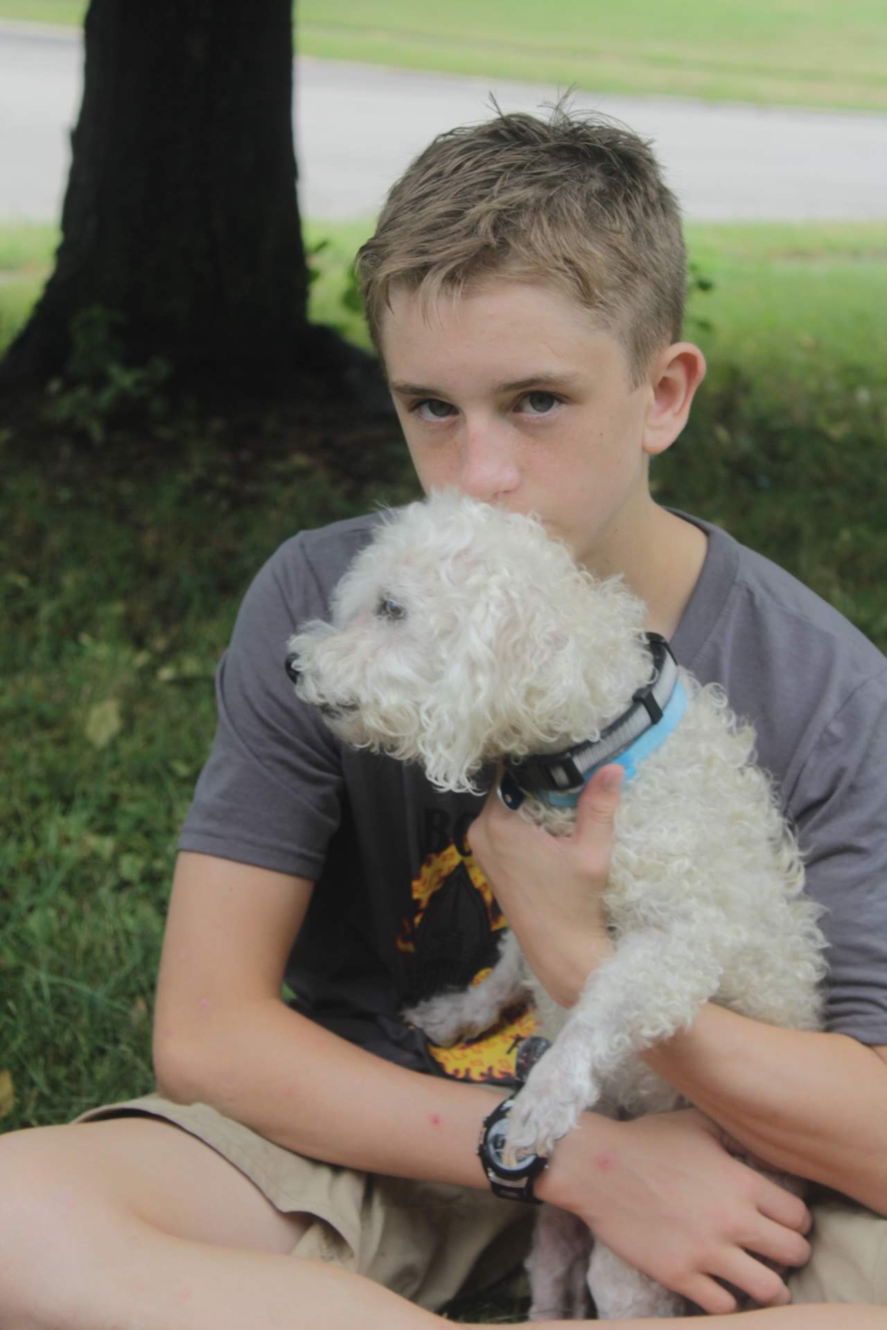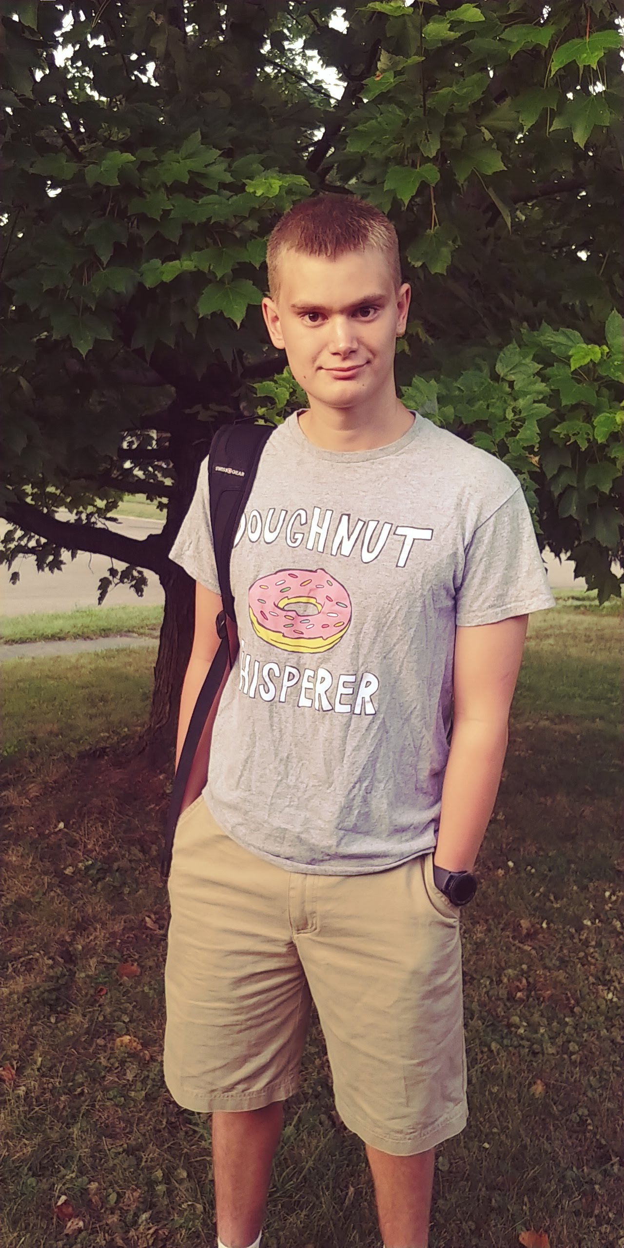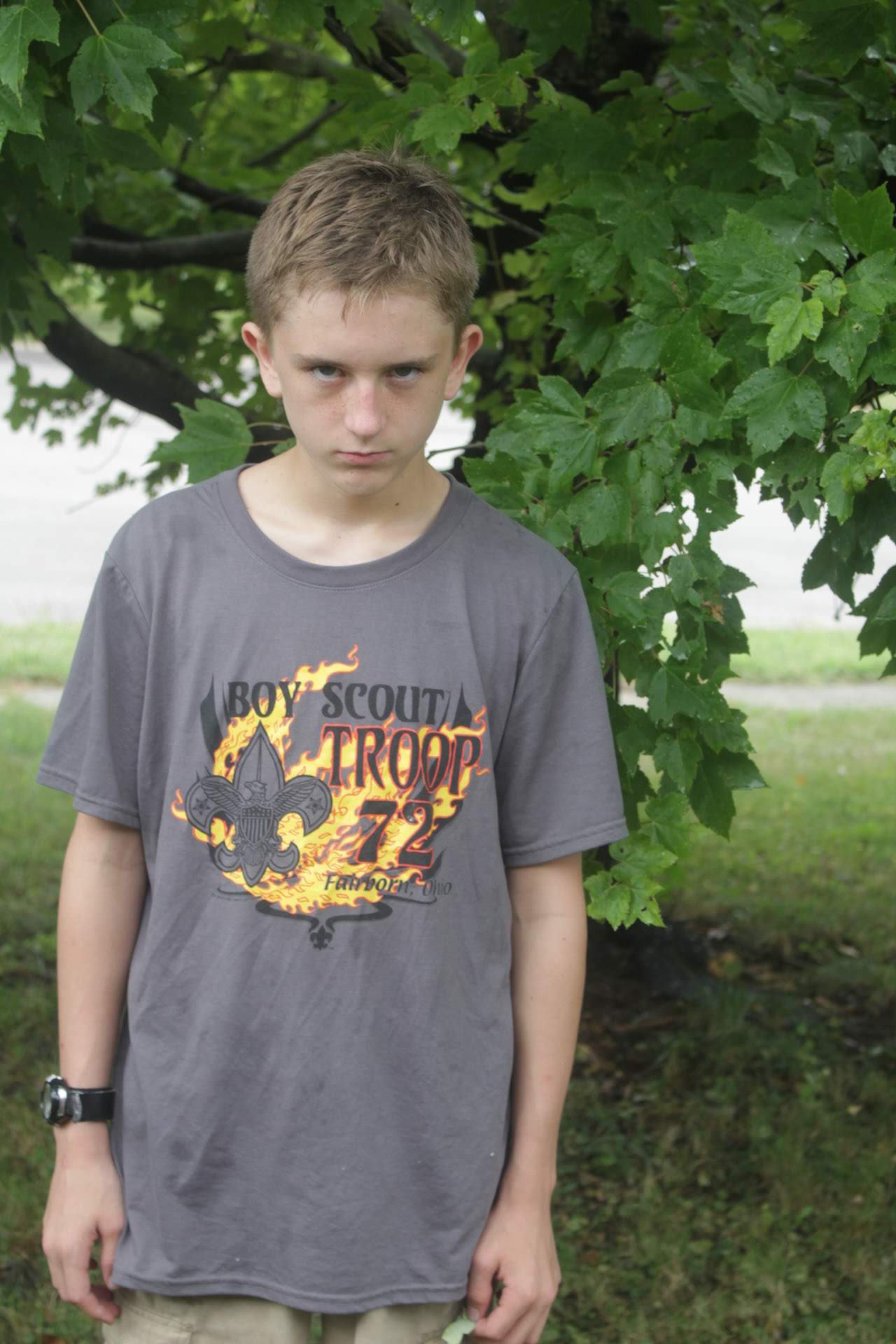 A tradition is to take photos on the first day or close to the first day of school in front of our tree in our yard. I do a photo session. Some years, the photos are great. Other years, well they are quite interesting. This year was a combination.