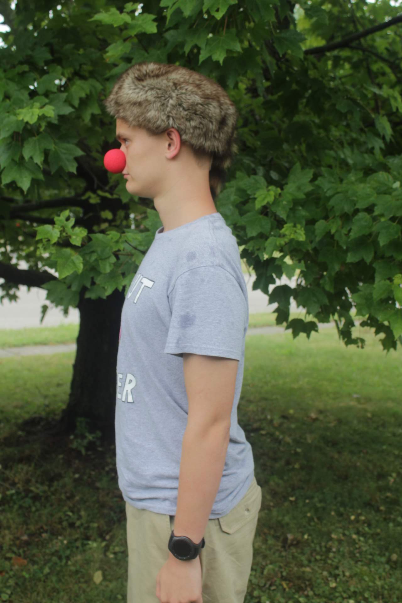 Next the red nose and Davy Crockett hat came out and the silly photos were taken.