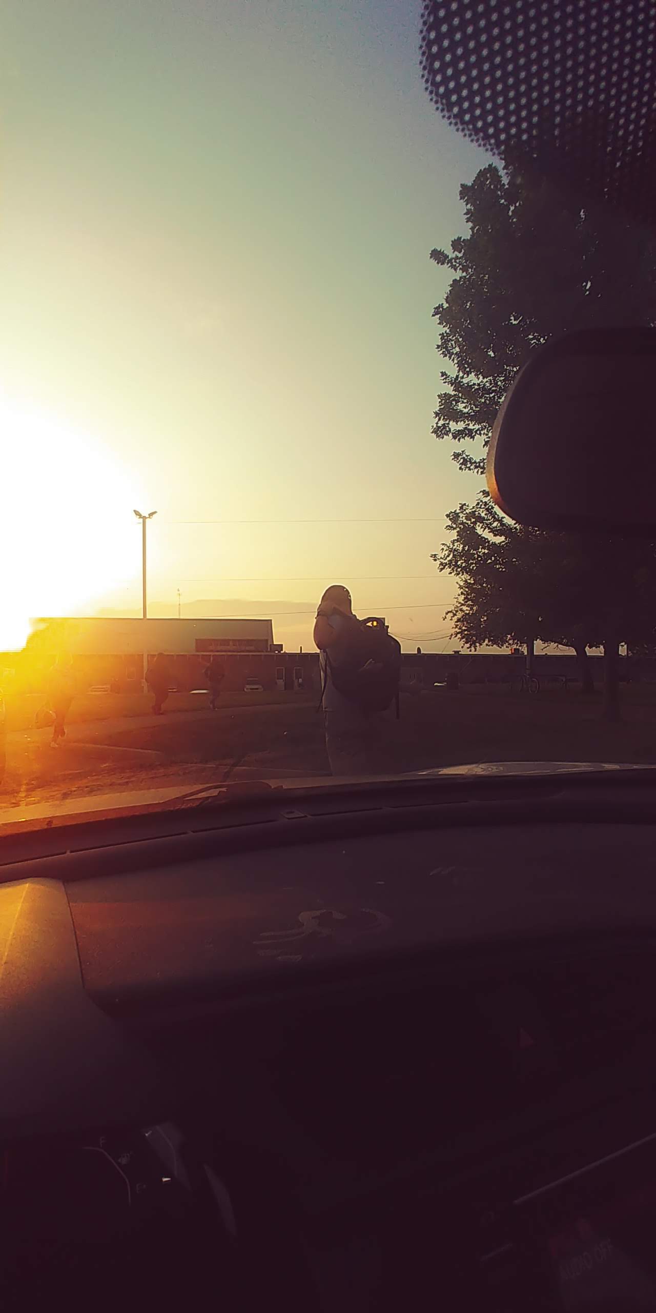 After yelling at the Oldest to get moving because car drop off was going to be busy because it was the first day of school, I was able to get a photo of him in front of our tree. I took a few other photos in the car during drop off.