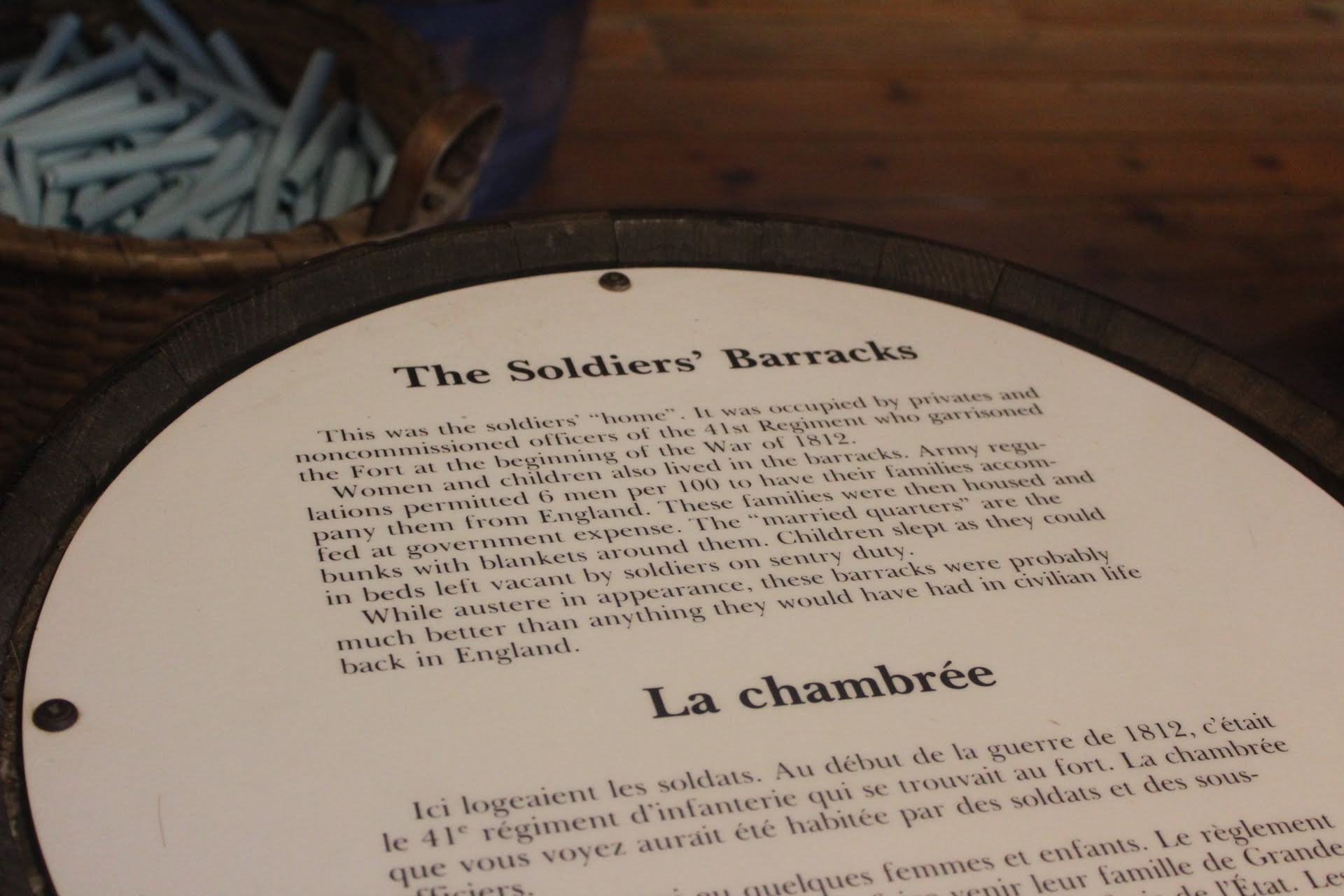 Everything was in both English and French. This is a difference between attractions like that and ones in the United States. This bilingual presentation sets them apart. They demonstrated how to use a rifle from the 1700s. This was done in both English and French. It was interesting.