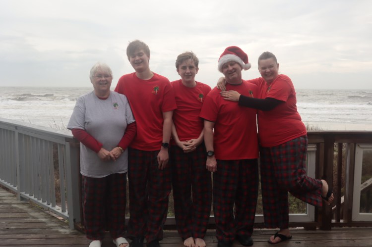 My mother-in-law made us matching Christmas shirts and pj pants. Since it was going to be windy and COLD on Christmas, we did our family photos on Christmas Eve. Oldest is now taller than his 19-year-old cousin – NOT pictured in this post. I didn’t realize Oldest had another growth spurt. Youngest has been the one to get taller during the pandemic. He’s grown at least half foot in the last year. He’s now taller than me.