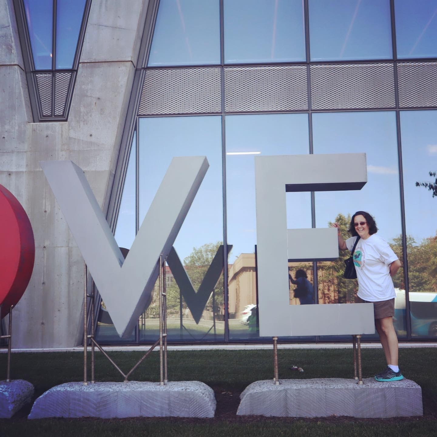 My chosen sister/ friend, Molly, and I are on our annual EPIC trip. Yesterday’s adventure took us to Reston, VA which by the way is the most expensive town/ city in VA to live in. We went to a small zoo there and then tried to find a LOVE sculpture. We ended up at the Reston Square which is where one of the Google offices is located.