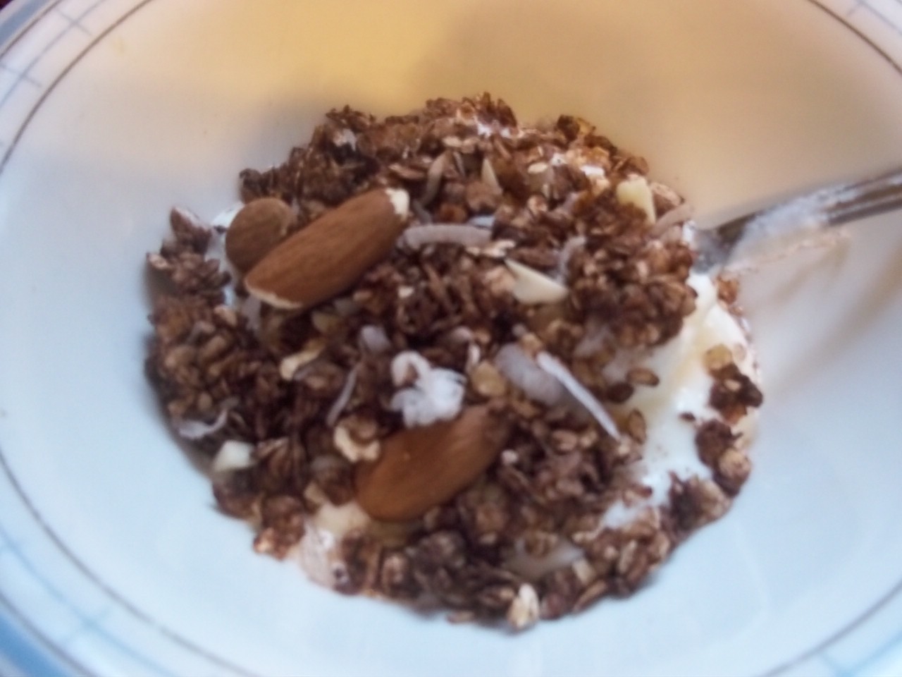 My other favorite treat is granola, either plain or with plain Greek yogurt. So the combination of the taste of Almond Joy candy bars with yogurt is the best flavor, at least it is to me.