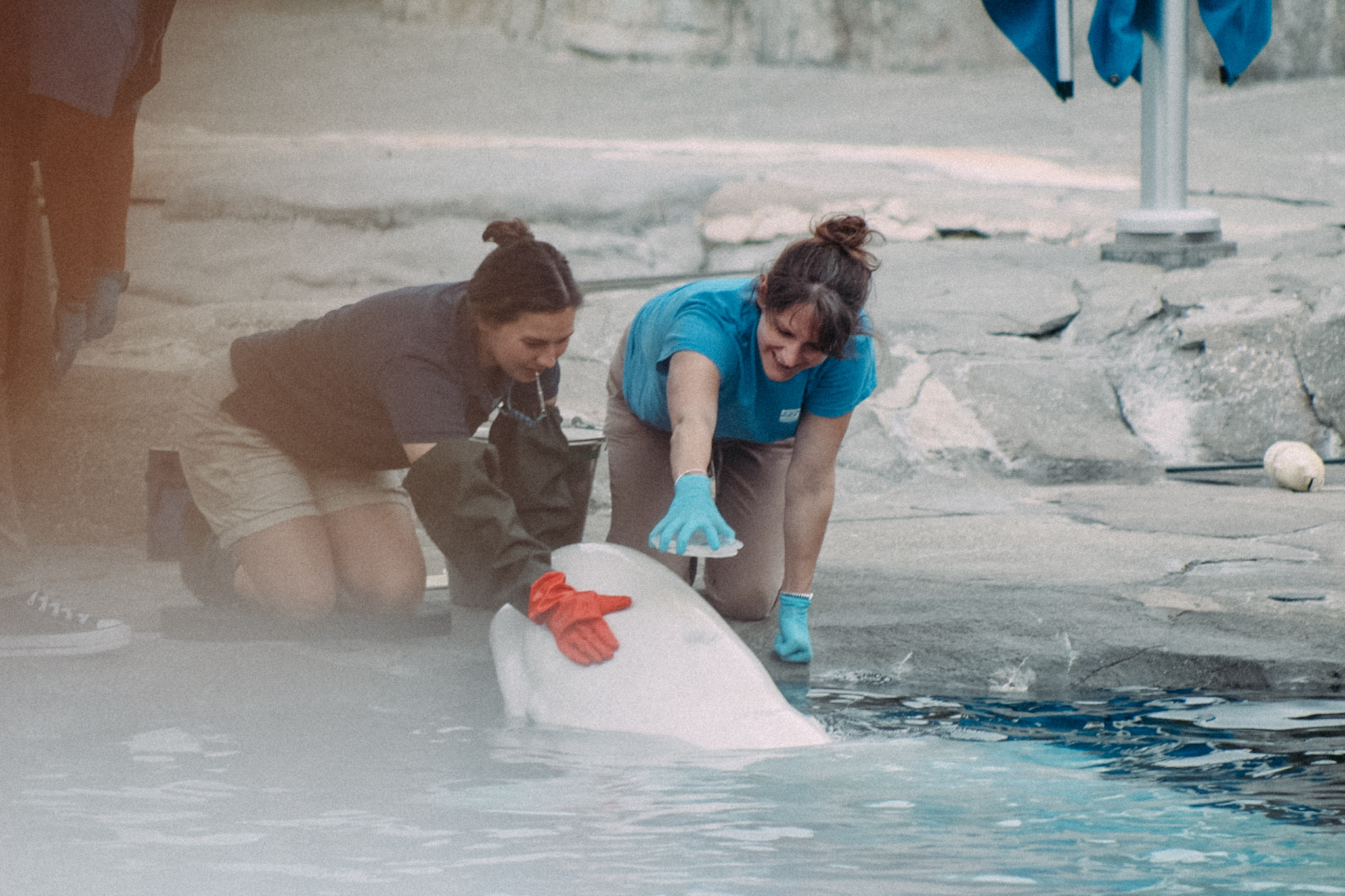After we were done with the sea lion show, we went back outside. They were doing a training with the beluga whale, which we thought was interesting.